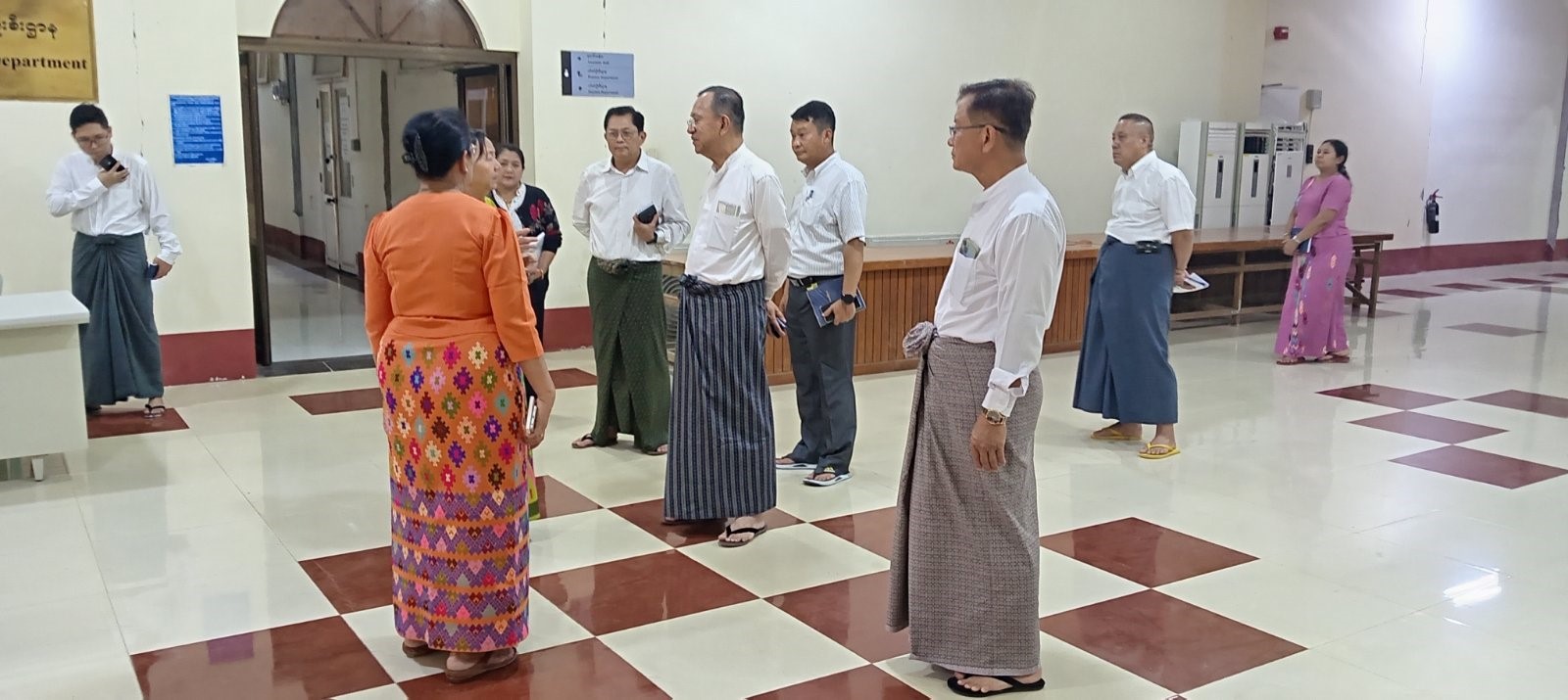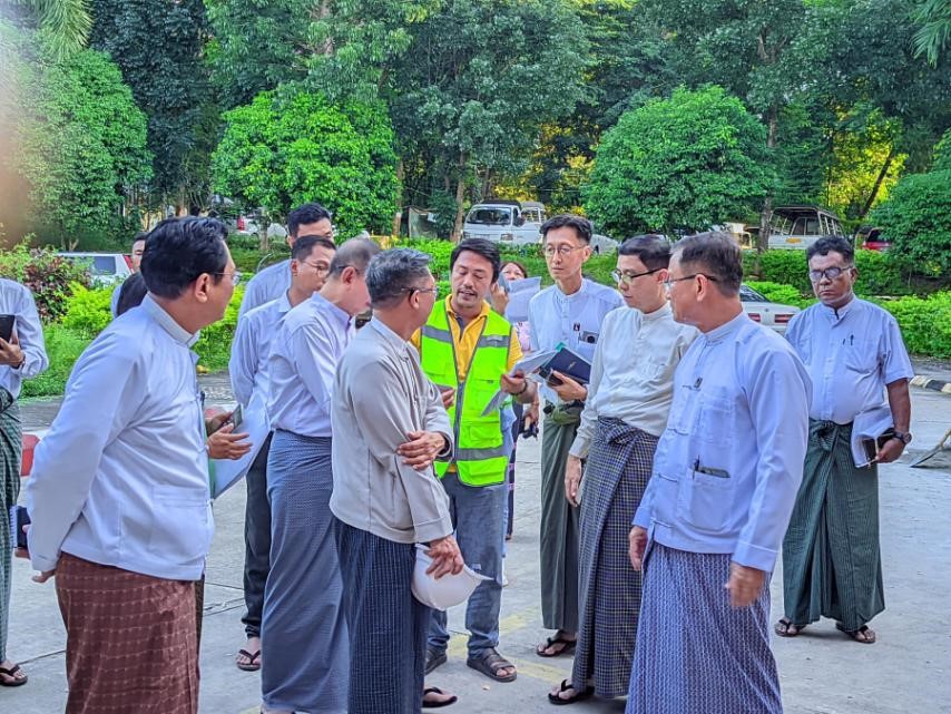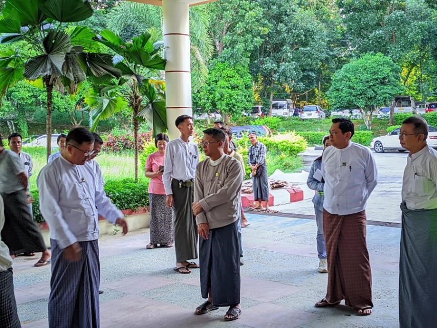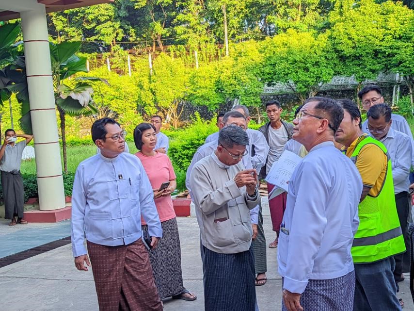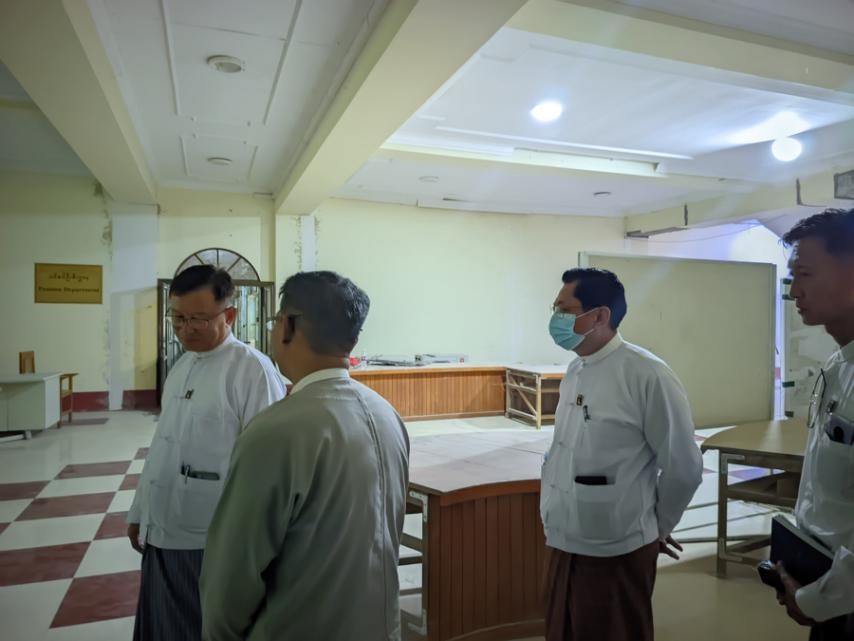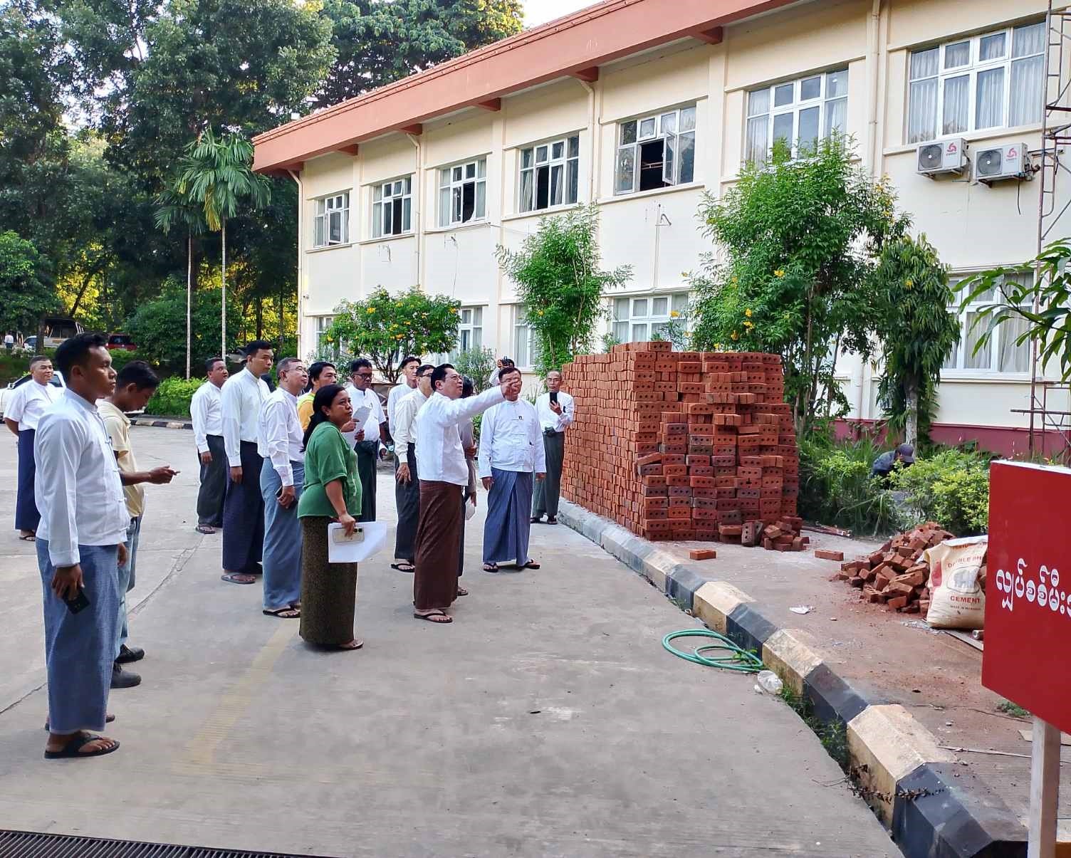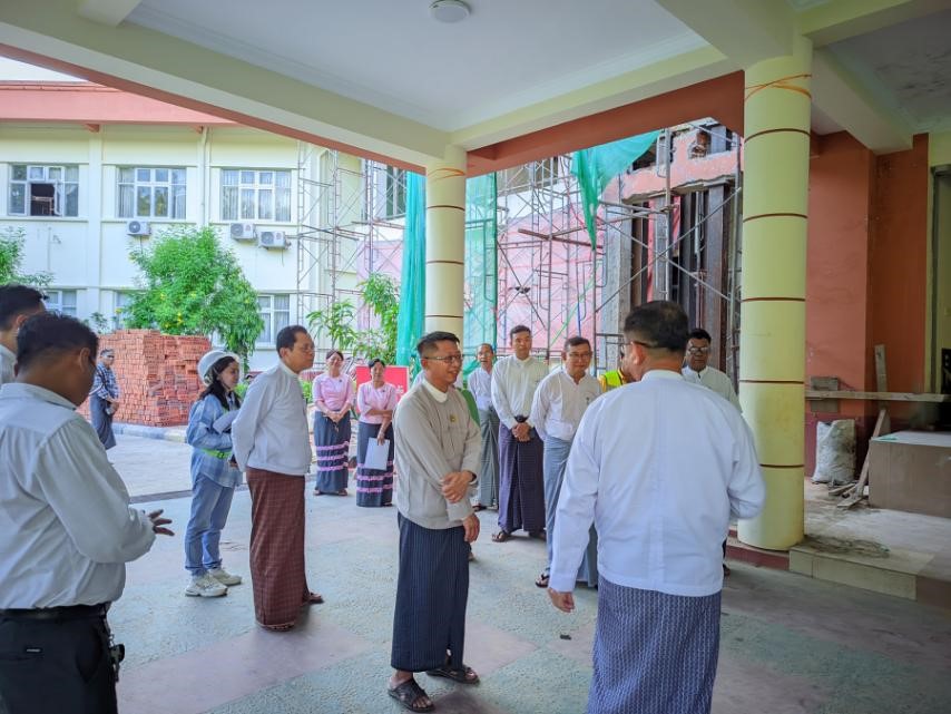 ပင်စင်ဦးစီးဌာန၊ ရုံးအမှတ် (၃၄) အဆောက်အဦ ပြင်ဆင်နေမှုများအား ကြည့်ရှုစစ်ဆေးစဉ်