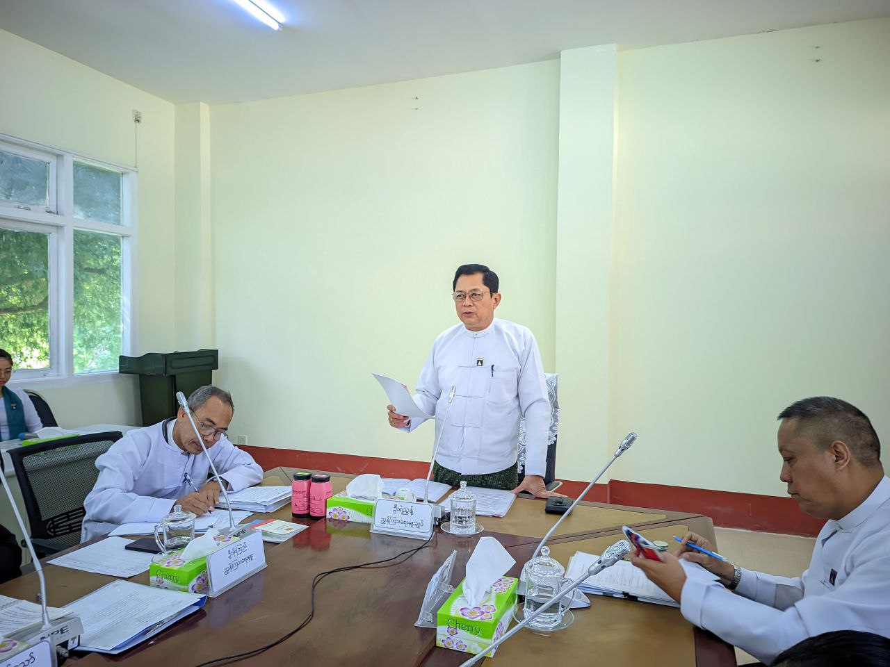 ပင်စင်ဦးစီးဌာန၊ အုပ်ချုပ်ရေးနှင့်လူ့အရင်းအမြစ်စီမံခန့်ခွဲရေးဌာနခွဲ၊ ညွှန်ကြားရေးမှူးမှ ဆွေးနွေးတင်ပြစဉ်