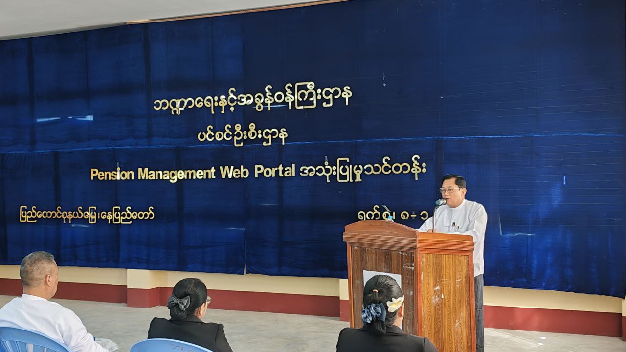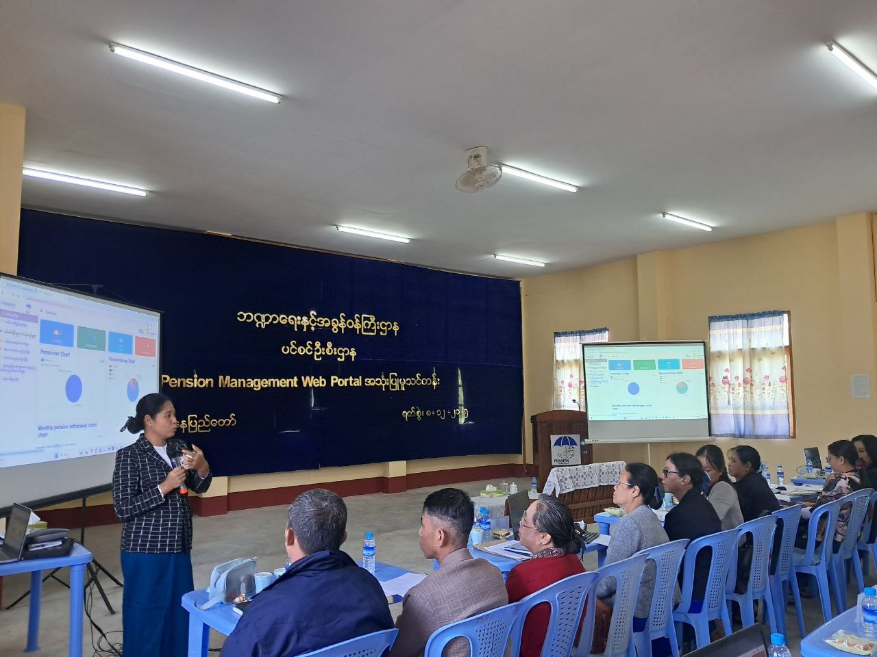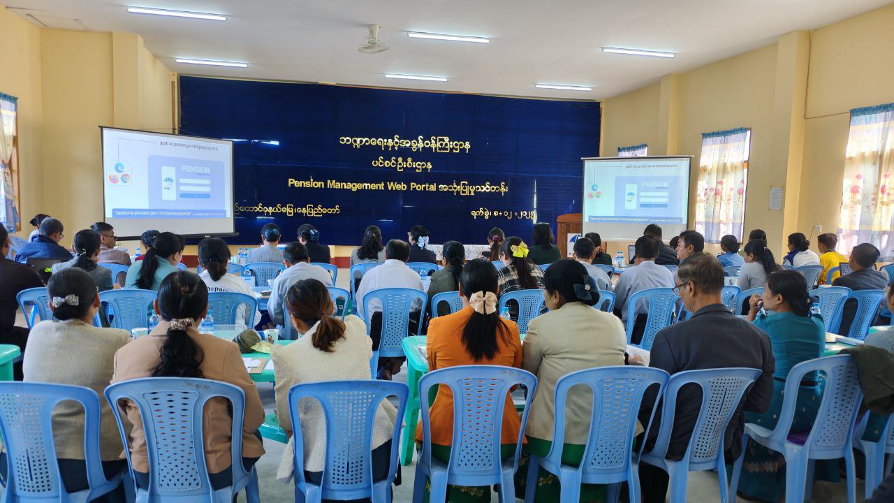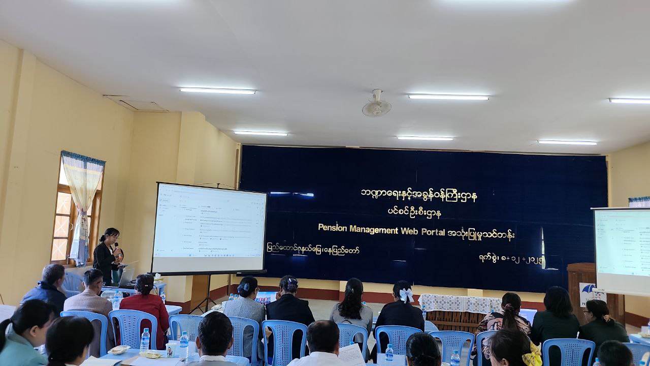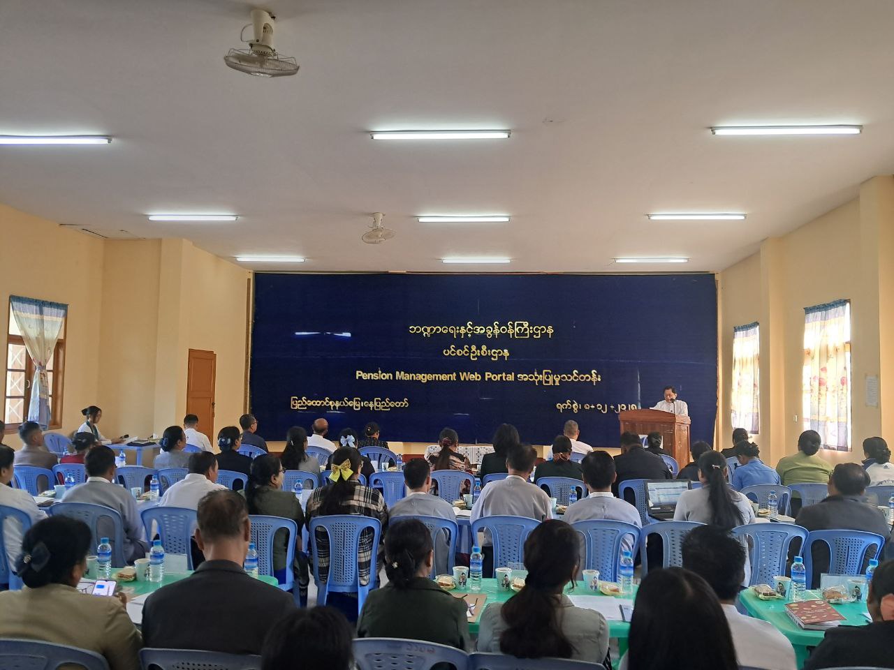 ဘဏ္ဍာရေးနှင့်အခွန်ဝန်ကြီးဌာန၊ ပင်စင်ဦးစီးဌာန၏ Pension Management Web Portal အသုံးပြုမှုသင်တန်းဖွင့်ပွဲအခမ်းအနားကို ၈-၁၂-၂၀၂၅ ရက်နေ့၊ နံနက် (၀၉:၃၀) နာရီအချိန်တွင် ပြည်ထောင်စုနယ်မြေ၊ ဘေးအန္တရာယ်ဆိုင်ရာစီမံခန့်ခွဲမှုဦးစီးဌာန၏ သင်တန်းခန်းမ၌ ကျင်းပပြုလုပ်ခဲ့ပါသည်။ အခမ်းအနားသို့ ပင်စင်ဦးစီးဌာန၊ ညွှန်ကြားရေးမှူးချုပ် ဦးရဲညွန့်နှင့် ညွှန်ကြားရေးမှူးများ၊ နေပြည်တော်ကောင်စီ ပင်စင်ရုံးတာဝန်ခံ၊ ဌာနအဖွဲ့အစည်း (၁၈) ခုမှ သင်တန်းသား/သင်တန်းသူများနှင့် ကုမ္ပဏီမှ တာဝန်ရှိသူများ တက်ရောက်ကြပါသည်။ ပင်စင်ဦးစီးဌာန၊ ညွှန်ကြားရေးမှူးချုပ် ဦးရဲညွန့်က Pension Management Web Portal ဆောင်ရွက်ထားရှိမှုအခြေအနေနှင့် ရှေ့ဆက်ဆောင်ရွက်မည့်လုပ်ငန်းစဉ်များကို ရှင်းလင်းပြောကြားခဲ့ပြီး တက်ရောက်လာကြသော သင်တန်းသား/သင်တန်းသူများနှင့် ရင်းရင်းနှီးနှီးတွေ့ဆုံခဲ့ပါသည်။ ဆက်လက်ပြီး သင်တန်းသား/သင်တန်းသူများအား Pension Management Web Portal အသုံးပြုမှုဆိုင်ရာ User Guide Video Clip များကို ပြသ၍ ပင်စင်အမှုတွဲပေးပို့မှုနမူနာပုံစံအား လက်တွေ့ဆောင်ရွက်ပြသခဲ့ပါသည်။ ထို့နောက် တက်ရောက်လာသော သင်တန်းသား/သင်တန်းသူများမှ စနစ်အသုံးပြုခြင်းနှင့်ပတ်သက်၍ သိရှိလိုသည်များ မေးမြန်းခဲ့ပြီး တာဝန်ခံညွှန်ကြားရေးမှူးက ပြန်လည်ရှင်းလင်းဖြေကြားခဲ့ပါသည်။
